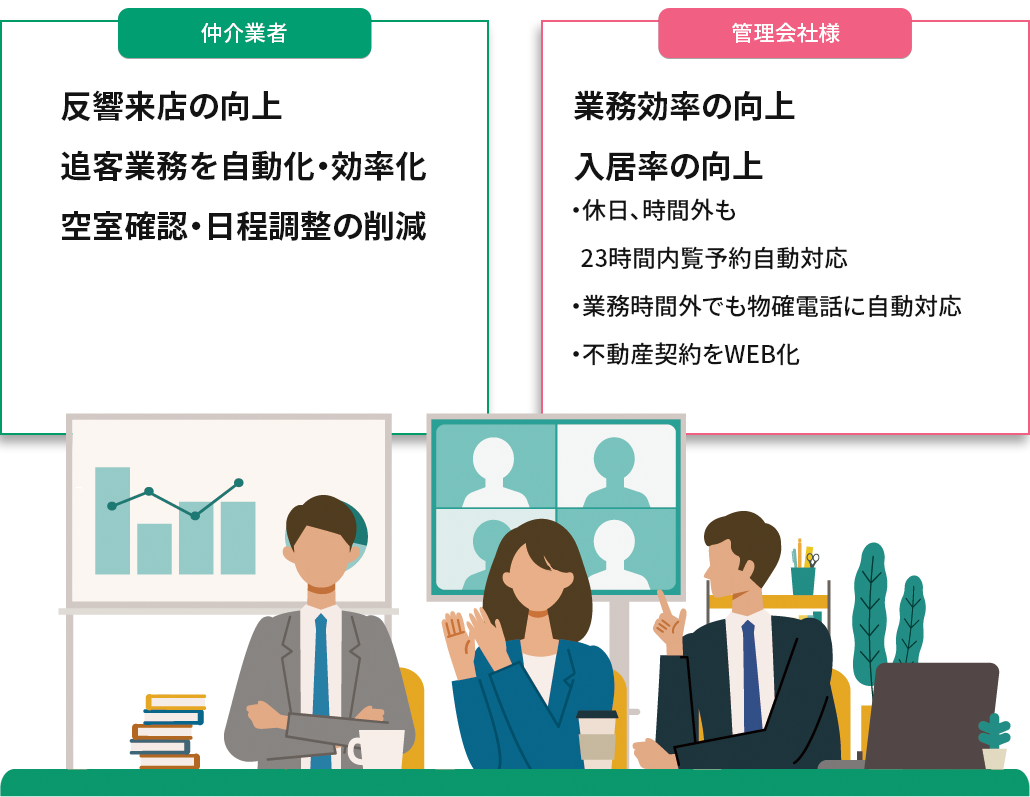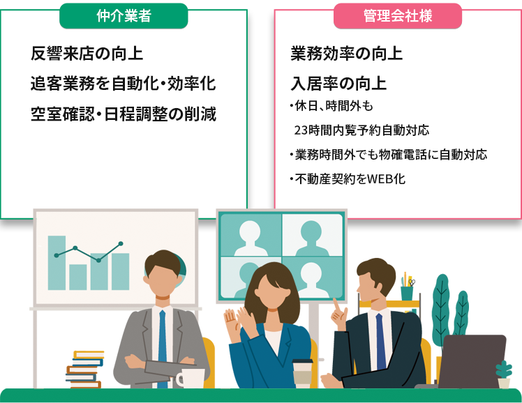 不動産会社様・管理会社様の各業務をひとつのシステムで一元管理することで、